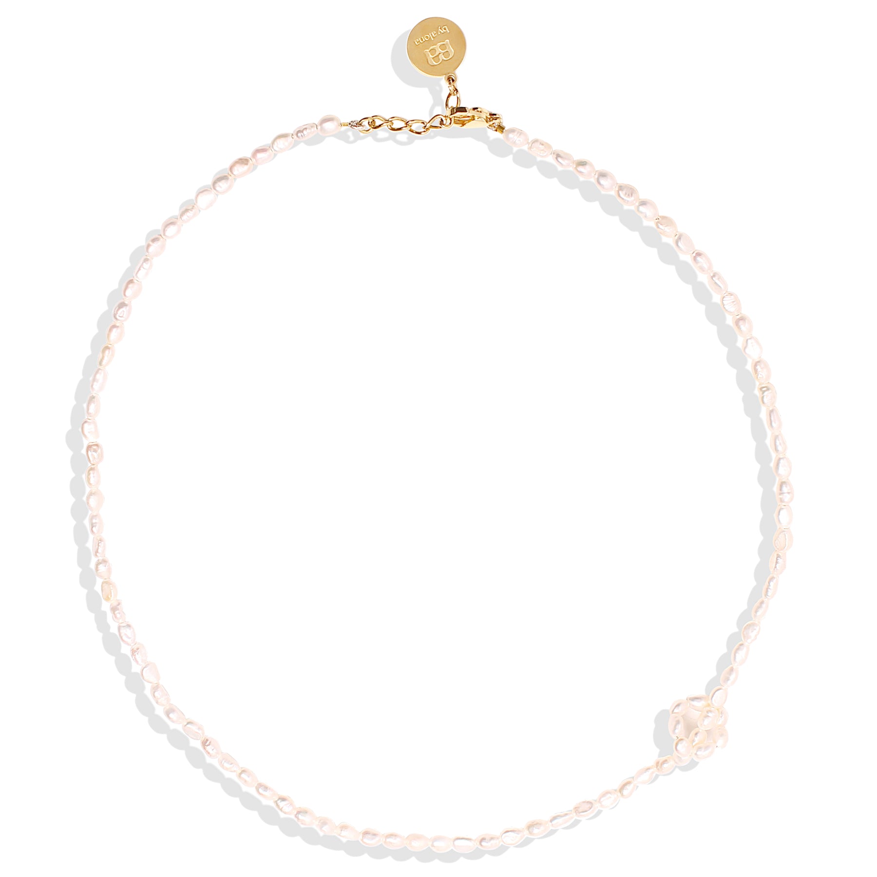 Classic pearls, reworked. The Donna Necklace features hand-strung rice pearls, finished with a sculptural off-centre knot detail at the front. A delicate update on a classic, with a modern twist.