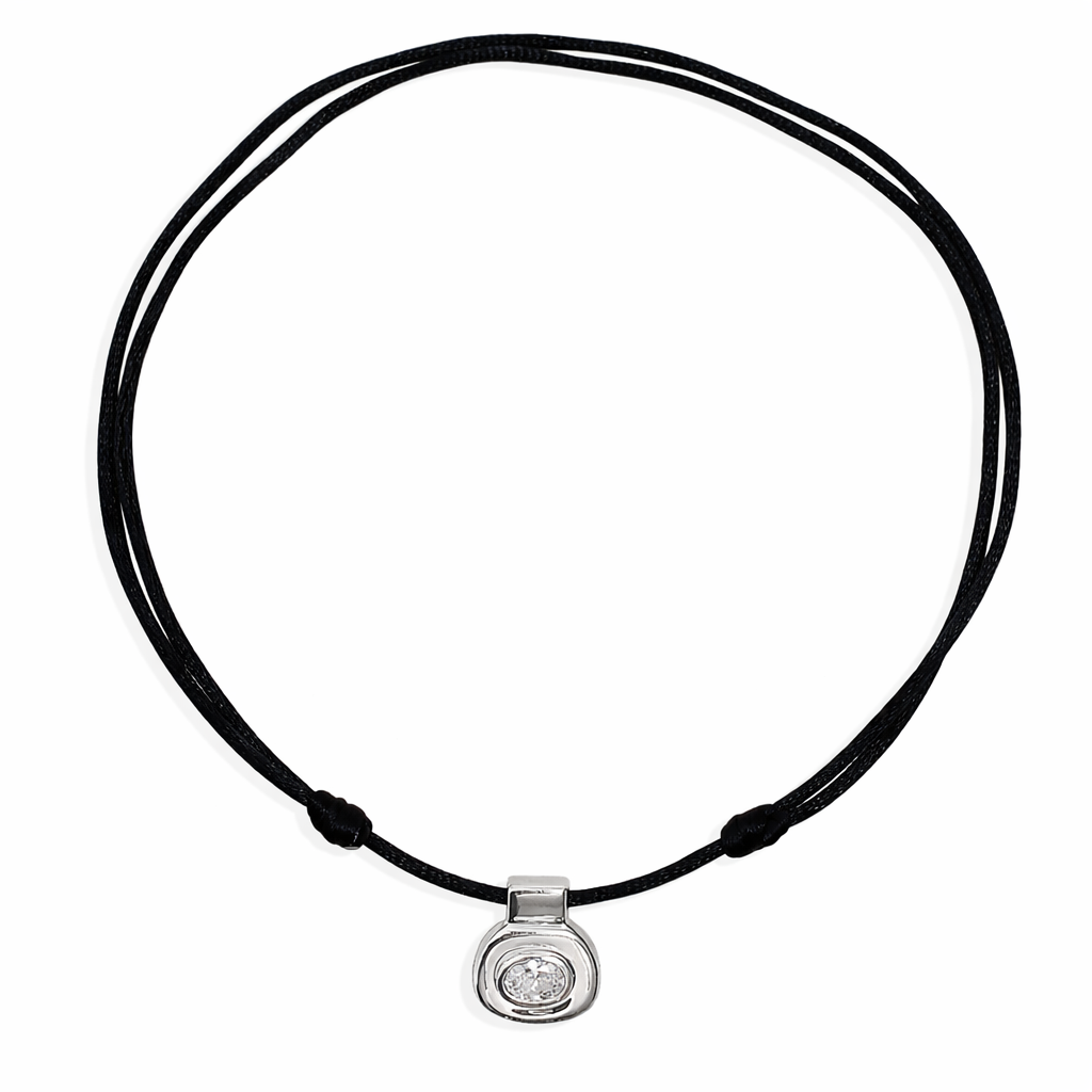 Low-key shine, everyday cool. The Sabine necklace features your choice of coloured silk cord, finished with an oval pendant set with a sparkling cubic zirconia. Refined but unfussy, it’s the kind of piece you’ll reach for daily - worn solo or layered into your stack.