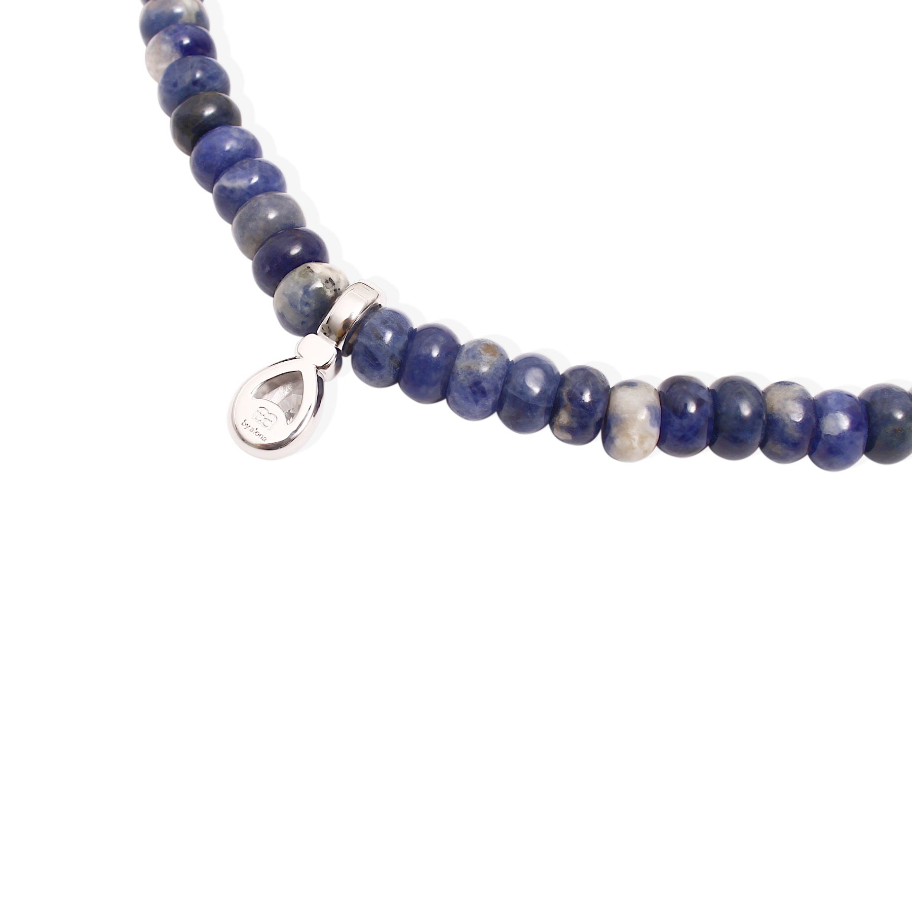 A colourful twist on a classic pendant. This blue sodalite beaded necklace is finished with our signature teardrop pendant in sterling silver plating, handset with a sparkling cubic zirconia stone. A versatile piece that brings both elegance and vibrancy to your look. Sodalite is also believed to be one of the best tools for healing and spiritual growth, and gives strength to your intuition.