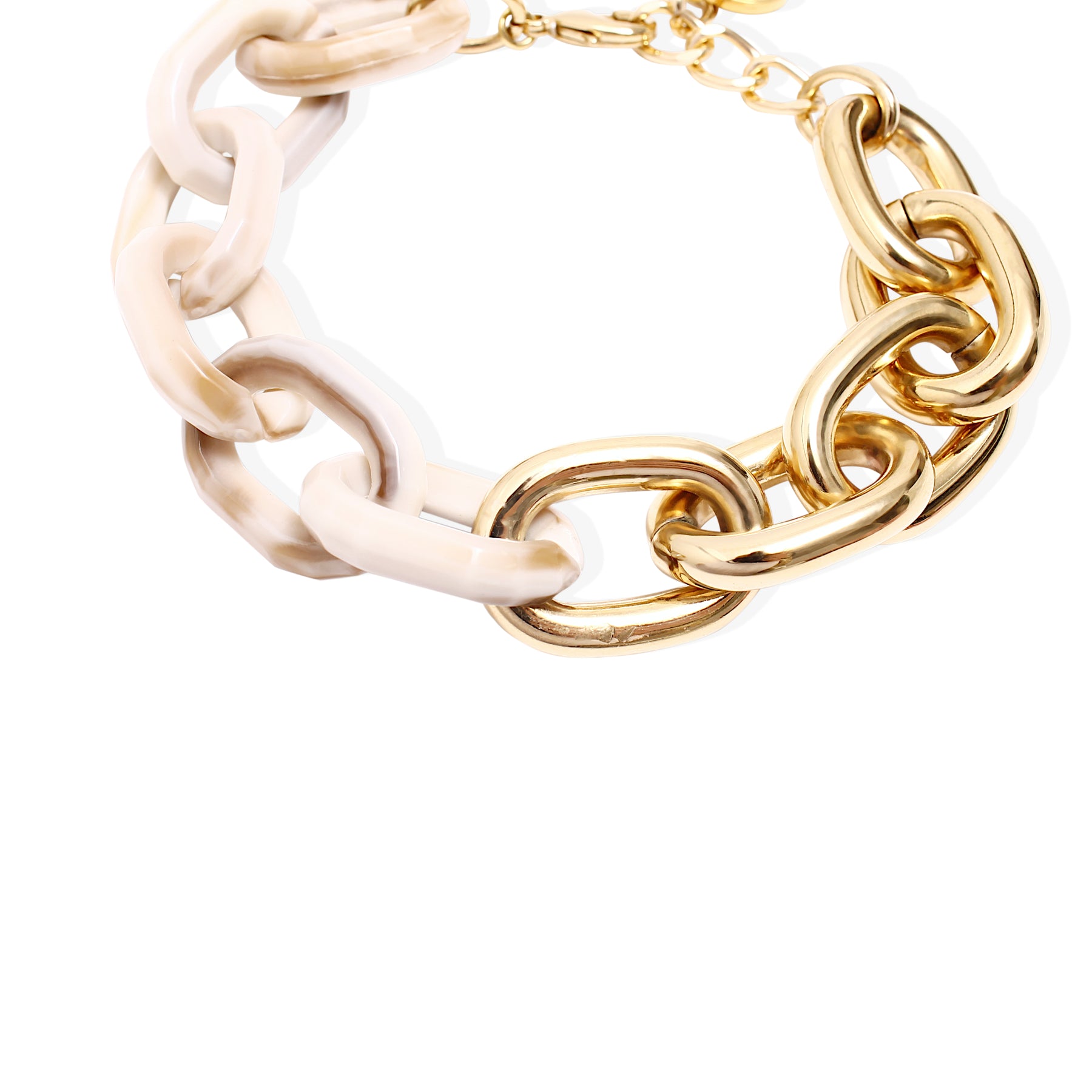A bold yet wearable statement. This bracelet combines an 18kt gold-plated oval link chain with a marbled acrylic oval-link chain for a striking mixed-material design. Perfect for adding a contemporary edge to everyday looks.