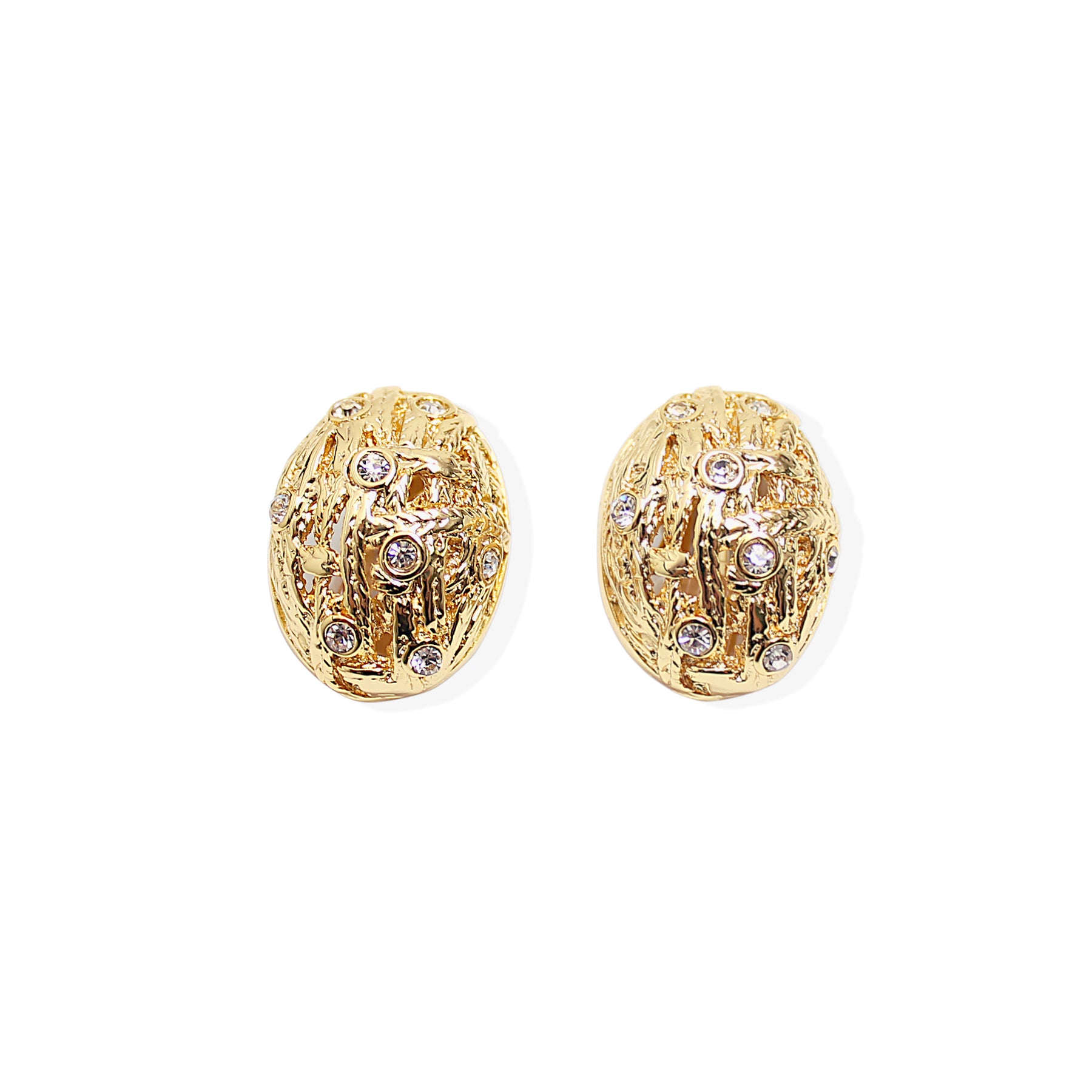 A bold yet refined statement, the Darla Earrings are crafted in 18K gold plated brass with a textured finish. Decorated with sparkling cubic zirconia stones, these clip on earrings strike the perfect balance between timeless elegance and contemporary edge, ideal for elevating everyday looks or adding a touch of glamour for the evening.